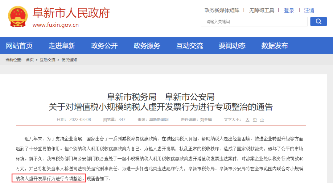 近日,阜新市稅務(wù)局發(fā)布最新公告:對全市小規(guī)模納稅人進(jìn)行專項整治。
